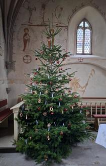 Die Gemeinde dankt den Kirmesburschen Dörnberg, die den schönen Weihnachtsbaum für die Kirche gespendet haben.