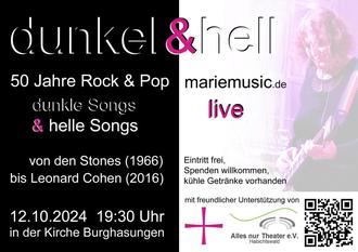 Mit Songs von den Stones, Queen, David Bowie, Patti Smith, Rammstein, Joy Division, Eurythmics, Armanda Lear, Puhdys, Nightwish, ELP, Reinhard Mey, John Lennon, Neil Young, Leonard Cohen, Peter Gabriel und ein wenig auch Eigenes. Von Marie live gespielt mit ihrer einzigartigen, von ihr selbstgebauten „Gitarre", mit der sie eine komplette Band spielt und steuert.