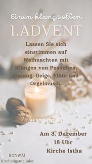 18 Uhr Adventskonzert mit Musikerinnen und Musiker aus den sechs Dörfern und Pfarrerin Isabell Paul