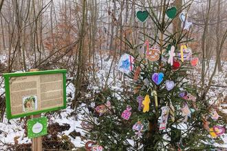 Entlang des Weges stehen Weihnachtsbäume, deren Baumschmuck von vielen fleißigen Kindern aus Kindergärten und Grundschulen des Naturparks Habichtswald gebastelt wurde. Als Besonderheit gibt es in diesem Jahr einen Mitmachbaum: Hier können Besucherinnen und Besucher selbst eine Kleinigkeit als Baumschmuck beisteuern und aufhängen.