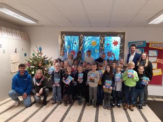Erfreulicher Besuch kurz vor Weihnachten in der Grundschule Dörnberg. Habichtswalds Bürgermeister Dr. Daniel Faßhauer besuchte die Erstklässler und hatte für jeden ein tolles Hausaufgabenheft im Gepäck. Järhlich überreicht der Rathauschef den Erstklässlern ein Geschenk, was die Schulen selbst auswählen dürfen.
