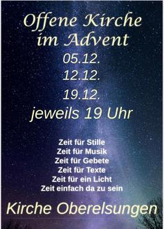 19 Uhr Offene Kirche im Advent (Zeit für Stille – Zeit für Musik – Zeit für Gebet – Teit für Texte – Zeit für ein Licht – Zeit einfach da zu sein)
