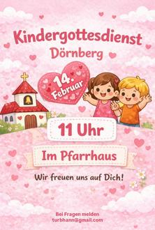 | 14. Februar | 11 Uhr Kindergottesdienst im Pfarrhaus |