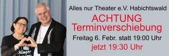 Der Habichtswalder Theaterverein "Alles nur Theater e.V." zeigt sich mehr als zufrieden mit dem bisherigen Verlauf. Vor gut zwei Wochen die erfolgreiche Premiere der Schlagerkomödie in der gut gefüllten Halle. Am letzten Sonntag durfte das Team vor ausverkauftem Haus aufführen. Das begeisterte Publikum singt, klatscht, feiert mit. Der Theaterverein bedankt sich herzlich bei allen bisherigen Besuchern und Gästen.
