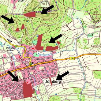 Die räumlichen Geltungsbereiche umfassen die Flächen in der Gemarkung Dörnberg, Flur 5, Flurstücke 2 (in Teilen), 13/5 (in Teilen), 5/2 (in Teilen) sowie die Gemarkung Dörnberg, Flur 14, Flurstück 72.