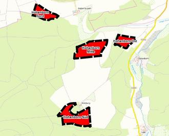 Für die Umsetzung der artenschutzrechtlichen Maßnahmen für die Feldlerche werden zusätzlich 3 Teilbereiche in der Gemarkung Hohenborn dargestellt, die nicht in den Geltungsbereich einbezogen wurden, sondern gem. §1a Abs. 3 Satz 4 BauGB durch Städtebauliche Verträge gesichert werden.