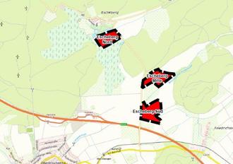 Die Gebietsabgrenzung des Bebauungsplanes „PV-Freiflächenanlage Escheberg“ ist dieser Bekanntmachung als Anlage beigefügt. Der Geltungsbereich umfasst drei Teilbereiche (TB):