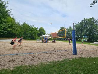 Alle Anmeldeplätze sind vergeben, aber es gibt eine Warteliste. Wir freuen uns schon sehr auf das Beachvolleyball-Dorfturnier mit sportlichem Ehrgeiz, gutem Essen, erfrischenden Getränken und Summerbeats – kommt gerne auch als Zuschauer vorbei. Gespielt wird in 4er-Teams mit mindestens einer Frau auf dem Feld.