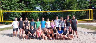 Bei frischer Brise, zunächst etwas Wolken, sommerlichen Beats und Teamgeist, begann das Turnier mit einem Teamfoto. Anschließend startete die Vorrunde (jeder gegen jeden) mit jeweils einem Satz bis 15 Punkten. Gespielt wurde mit 3 Personen auf dem Feld mit mind. einer Frau. Nach einer kurzen Snack-Pause und einer spontanen Umorganisation der Platzierungsspiele für die Plätze 5-7 ging es am Nachmittag dann an die Platzierungsspiele bis 21 Punkten.