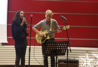 Die Marburger Sängerin EVOU und David Christ an der Gitarre gestalteten den Abend musikalisch.