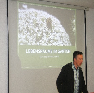 Der für 60 Minuten geplante Vortrag enthielt so viele Informationen, Hinweise und Tipps, dass Herr Pfuhl locker über 90 Minuten begeistert und überzeugend referierte. Zwischendurch und hinterher wurden alle Fragen der Gäste beantwortet und drei der Bücher des Referenten konnten käuflich erworben werden. Der Kauf des Buches zum Vortrag lohnt sich auf jeden Fall für alle, die ihren Garten naturnah neu- oder umgestalten wollen.