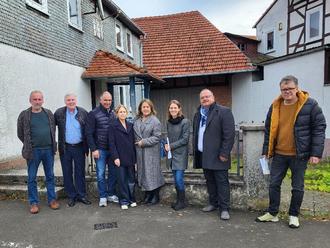 Gruppenfoto vor dem Geburtshaus von Willy Kugelman in Wohra.