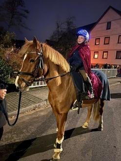 Ein echtes Highlight – Hoch zu Roß‘ begleitete Luana Schnatz als Halsdorfer „Sankt Martin“ den Laternenumzug. Foto: B. Bubenheim