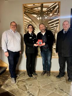 Anette Teuber vom Kreisfeuerwehrverband Marburg- Biedenkopf überbrachte mit Wehrführerin Alexandra Faschingbauer, Bürgermeister Heiko Dawedeit und Gemeindebrandinspektor Sandro Faschingbauer die 58. Auszeichnung im Landkreis Marburg-Biedenkopf.