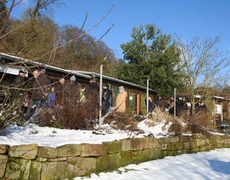 Rund um den Lehrbienenstand Himmelsberg strahlte der Himmel blau, die Luft war klar und frisch, der Schnee glitzerte in der Sonne und knirschte bei jedem Schritt unter den Füßen. Am Ende einer kleinen Wanderung wartete Glühwein, Bratwurst und Kürbissuppe zum Verzehr. Ein herrliches Gefühl!