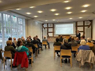 Im Rahmen der Veranstaltung stellte Robert Egelkamp von der EAM den rechtlichen Rahmen der kommunalen Wärmeplanung vor und gab einen Überblick über die Bestands- und Potenzialanalyse als Zwischenergebnisse der Wärmeplanung.