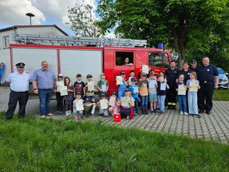 1 Knoten (kann auch der Schuhknoten sein), einfache Gegenstände erkennen (Schlauch, Strahlrohr…), die vier Aufgaben der Feuerwehr nennen können (Retten, Bergen, Löschen, Schützen), wo bekommt die Feuerwehr das Wasser her?