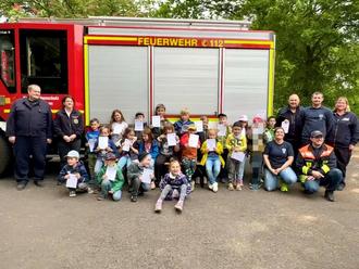 Sichtlich stolz zeigen die Kinder der Kinderfeuerwehren aus Halsdorf und Wohra ihre Urkunden. (Foto: FFW Wohratal)