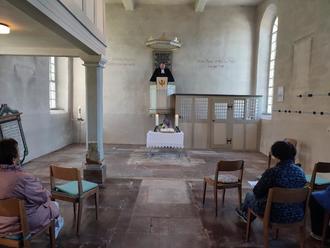 Am Muttertagsmorgen, d. 11. Mai, fand vorerst der letzte Gottesdienst in der Hugenottenkirche in Hertingshausen statt. Die Besucherinnen und Besucher saßen nicht mehr auf Bänken, sie nahmen auf aufgestellten Stühlen Platz.