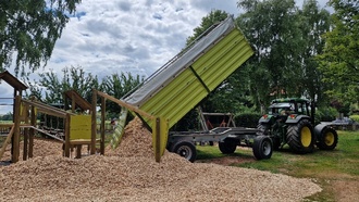 Beim anschließenden Aktionstag am 09.07.25 packten viele engagierte Eltern und Kinder mit an: Deutlich mehr als 30 Personen waren gekommen, um gemeinsam ihren Spielplatz zu verschönern. Hackschnitzel wurden als Fallschutz verteilt, Hecken geschnitten und weitere Pflegearbeiten erledigt. Die Zusammenarbeit zwischen Bauhof und Eltern funktionierte dabei hervorragend – das Miteinander wurde von allen Seiten gelobt. Dabei wurde nicht nur gemeinsam gearbeitet, sondern auch viel gelacht und gespielt. Zum gemütlichen Abschluss gab es Pizza für alle – und natürlich durften die neuen Spielgeräte direkt ausprobiert werden!