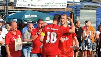Nach dem Ausgleich sorgte Tim Weimer noch in der 1. Halbzeit für die 2:1 - Führung. Mit dem 3:1, wiederum durch „Ibo“, stand dann der Cupsieger fest. Ein kleiner Schatten lag über dem Auflauf, weil der TSV Amöneburg und noch zum Finaltag der TSV Mengsberg die Teilnahmen absagten. Dank an die „Ersatzmannschaften“, den Kreisoberligisten SC Münchholzhausen/Dutenhofen aus dem Kreis Wetzlar und den A-Klassisten Eintracht Stadtallendorf II mit ihrem neuen Trainer Achim Gleim. Um den 5. Platz im Duell der „Ersatzmannschaften“ siegte Stadtallendorf nach Elfmeterschießen. Auf Platz drei kamen die Sportfreunde BG Marburg II als Gruppenligist gegen die neu gebildete FSG Röddenau/Bottendorf durch einen 2:1 Sieg. Alle Ergebnisse in den jeweiligen Gruppen sind in der Homepage des TSV Wohratal veröffentlicht. Die insgesamt sieben Spiele wurden von folgenden(r) Schiedsrichter (in) geleitet: Nils Ole Vitt, Christoph Witzel, Reiner Kuche, Silvana Hoß, Peter Nahrgang und Til Brandau, der für den TSV Wohratal Spiele leitet. Informationen am Mikrofon gab es von Lothar Martin an allen drei Tagen. Der TSV-Vorstand war mit dem Besuch zufrieden. Die Kreisfußballwartin Daniela Rühl aus Weipoltshausen und ihre Vertreterin Ellen Berghöfer waren auch Gäste auf dem Wohrataler Sportgelände und sahen einige der von den o. genannten Schiedsrichtern sicher geleiteten Spielen. TSV-Vorstandsmitglied Jens Ratz gratulierte allen Mannschaften, die sich über ein an den erreichten Plätzen gestaffeltes Preisgeld des Autohauses Denzel erfreuen konnten. Dank sprach er auch an die beiden Seniorenspieler Tim Weimer und Robin Kischnick, die seit kurzem die Jugendleitung im TSV übernommen haben und dies sehr engagiert machen.