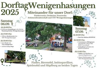 Am Samstag und Sonntag, 06.09. und 07.09.25 feiert Wenigenhasungen Dorftag mit BONWAI.