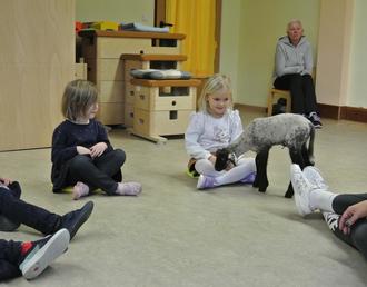 Die Kinder hatten die Gelegenheit, die beiden wollig-weichen Tierkinder aus nächster Nähe zu erleben. Sie beobachteten die Schäfchen aufmerksam, stellten viele Fragen und durften sogar das flauschige Fell berühren. Besonders spannend fanden die Kinder, was Schafe fressen, wie Babyschafe versorgt werden und wofür Schafe eigentlich wichtig sind.