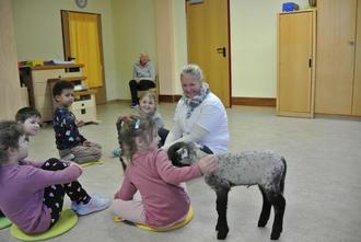 Die Schäfchen zeigten sich neugierig und zutraulich, während die Kinder beeindruckend ruhig und rücksichtsvoll blieben, um die jungen Tiere nicht zu erschrecken. Nach einem ereignisreichen Besuch wurden die kleinen Gäste schließlich müde und traten wieder die Heimreise an.