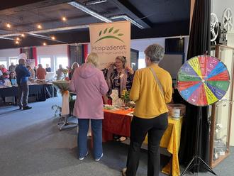Der Hospizdienst war ebenfalls vor Ort und lud die Besucher mit einem Glücksrad zu einer besonderen Reflexion ein. Nach dem Drehen des Rads wurden Fragen gestellt, die zum Nachdenken anregen sollten, wie zum Beispiel: „Was wünschen Sie der Enkelgeneration?“ oder „Welche Lebensweisheit möchten Sie weitergeben?“ Diese Aktion fand großen Anklang und ermutigte die Teilnehmer dazu, sich über Themen wie Wünsche, Werte und Lebenserfahrungen auszutauschen.