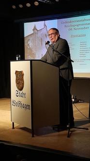 von der Walter-Lübcke-Schule sowie Ernst Klein, der es sich zur Lebensaufgabe gemacht hat, die jüdische Geschichte mit aufzuarbeiten, die Teilnehmer in eine Zeit zurück, als die jüdischen Einwohner Wolfhagens ganz selbstverständlich zu unseren Nachbarn und Freunden gehörten. Aber auch, wie Hass und Hetze diese Gemeinschaft zerstörte und die Nacht vom 09. auf den 10. November 1938 Symbol für das gesamte zukünftige Leid der jüdischen Gemeinschaft wurde.