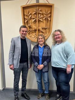 v. l.: Bürgermeister Dirk Scharrer, Helga Dittmar und Personalratsvorsitzende Carina Herbold