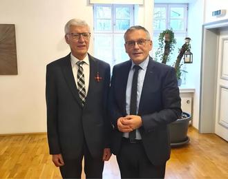 Erster Stadtrat Karl-Heinz Löber wurde am Samstag, den 6. Dezember 2025 von Landrat Andreas Siebert im Namen des Bundespräsidenten mit dem Bundesverdienstkreuz am Bande ausgezeichnet. Gewürdigt wurde damit das jahrzehntelange Engagement des 69-Jährigen, der sowohl beruflich – zuletzt als stellvertretender Geschäftsführer der Vitos-Kliniken – als auch im Ehrenamt wichtige Impulse für Wolfhagen und die Region gesetzt hat.