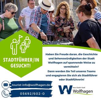 Haben Sie Freude daran, Menschen Ihre Heimat näherzubringen? Möchten Sie die Geschichte und Sehenswürdigkeiten der Stadt Wolfhagen auf spannende Weise vermitteln? Dann werden Sie Teil unseres Teams und engagieren Sie sich als Stadtführer oder Stadtführerin!