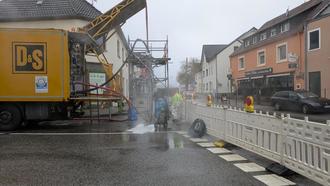 Teilbereichen der Bahnhofstraße wurden wichtige Kanalsanierungsarbeiten durchgeführt. Dabei kam das sogenannte Schlauchlining-Verfahren zum Einsatz – eine moderne Methode. Die bestehenden Kanäle werden hierbei von innen heraus erneuert. Flexible Gewebeschläuche, die mit speziellem Harz getränkt sind, werden über die vorhandenen Schächte in die Leitungen eingebracht und anschließend ausgehärtet. Der sichtbare Dampf gehört dabei ganz normal zum Verfahren.