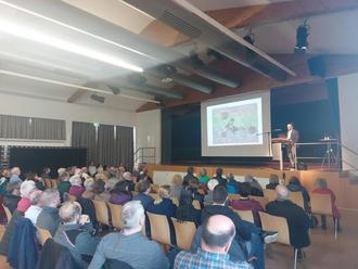Am 2. März stellte das Planungsbüro Dutt & Kist die Ideen für die Umgestaltung der Oberen Saarbrücker Straße interessierten Bürgerinnen und Bürgern bei einer Infoveranstaltung im Losheimer Saalbau vor. Bei der anschließenden Diskussionsrunde gingen Referent Luca Kist und Bürgermeister Helmut Harth auch auf Publikumsfragen ein.