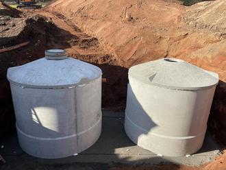 Baustelle und Abwasserbehälter an der Abwassersammelgrube der Toiletten-Anlage am Westufer. Fotos: Tanja Laux