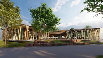 So wird das neue Empfangsgebäude des Losheimer Campingplatzes nach der Fertigstellung aussehen. Animationen: Rogmann Ingenieure