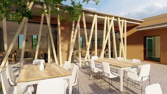 Das neue Empfangsgebäude mit einem Restaurant und einer großzügigen Terrasse verspricht den Gästen einen angenehmen Aufenthalt. Mit einer Fläche von rund 150 m² wird das Restaurant bis zu 80 Gästen Platz bieten und direkt an den Außenbereich angrenzen. Darüber hinaus wird der neue Empfangsbereich modernste Büro- und Verkaufsräume für die Verwaltung des Campingplatzes umfassen. Im Obergeschoss entsteht parallel eine Dienstwohnung
