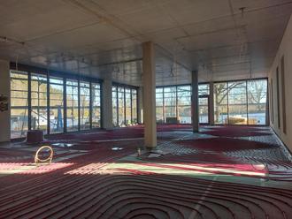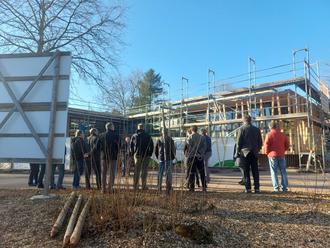 Bauleiter Jens Habermann von Rogmann Ingenieure führte durch die Baustelle und erläuterte anhand von Visulisierungen die einzelnen Bauabschnitte. Das Bauprojekt umfasst eine Gesamtfläche von 735 m² und wird im Sommer 2025 fertiggestellt. In den letzten Monaten wurde bereits ein wesentlicher Teil der Arbeiten abgeschlossen, darunter der Rohbau sowie der Fenstereinbau und Dachaufbau. Seit Dezember 2024 laufen die Innenausbauarbeiten mit Trockenbau, Elektrik sowie Heizungs- und Lüftungsinstallationen. Bisweilen waren acht verschiedene Handwerksbetriebe auf der Baustelle aktiv.