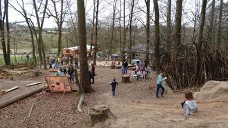 Besonders hervorzuheben sind eine große Feuerstelle mit Zeltplane und Sitzgelegenheiten, an der am Eröffnungstag Stockbrot gebacken wurde, sowie die Hochbeete in kindgerechter Höhe, die bald bepflanzt werden. Außerdem gibt es einen Holzbackofen, einen Holzzaun mit Kleiderhaken, eine Nestschaukel und einen „Tierweitsprung-Wettbewerb“, bei dem die Kinder spielerisch ihre Sprungkraft mit der von Tieren vergleichen können. Ein weiterer spannender Bereich ist der Felsschluchtenplatz im Wald, der zahlreiche Spielmöglichkeiten bietet und nach den Worten von Marcel Majeres, wie ein verwunschener Abenteuerort gelegen ist.