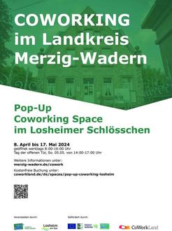 Nach intensiver Vorbereitung freut sich der Landkreis Merzig-Wadern gemeinsam mit der Gemeinde Losheim am See über die Eröffnung des ersten Pop-Up Coworking Spaces im Losheimer Schlösschen.
