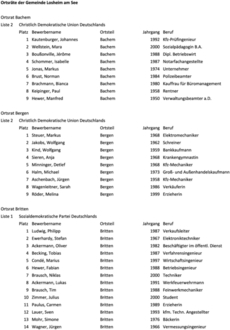 In den Ortsteilen Bachem und Bergen erfolgt die Wahl nach den Grundsätzen der Mehrheitswahl, da nur ein gültiger Wahlvorschlag eingereicht worden ist.
