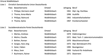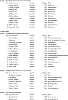 | - | Christlich Demokratische Union Deutschlands (CDU) Liste 1 |