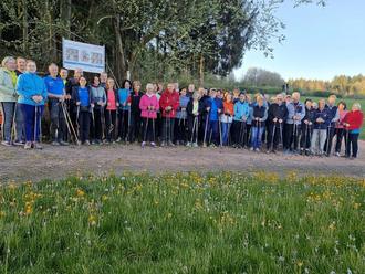 Zum Start der Laufsaison testeten rund 50 Teilnehmerinnen und Teilnehmer der Nordic Walking-Gruppe des Turnvereins Losheim bei schönstem Frühlingswetter das neue Infoangebot auf ihrer Trainingsstrecke im Umfeld des Losheimer Stausees.
