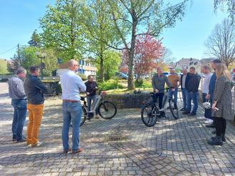 Die Teilnehmenden lauschten aufmerksam de Ausführungen des Umweltamtsleiters und passionierten Radfahrers Werner Ludwig und seinem ebenfalls radelnden Kollegen, Klimaschutzmanager Johannes Drehmann.
