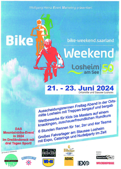 Der Stausee Losheim ist am 22. und 23. Juni Schauplatz einer außergewöhnlichen Mountainbike-Veranstaltung. Drei verschiedene Wettbewerbe stehen dabei auf dem Programm für Mountainbiker aus dem gesamten Bundesgebiet und BeNeLux. Anlass für das Bike-Weekend ist das 50-jährige Bestehen des Stausee Losheim.