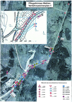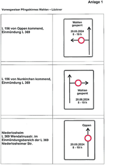 | Die Aufstellung der Verkehrszeichen hat entsprechend der beigefügten Verkehrszeichenpläne zu erfolgen. Diese sind Bestandteil dieser Anordnung. |