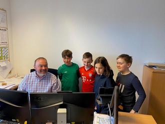 Kurz darauf kam noch der Klimaschutzmanager Johannes Drehmann vorbei und erklärte den Kindern seine Aufgaben. Ein großes Anliegen ist ihm z.B. der Radverkehr. Im Juni steht wieder die Aktion Stadtradeln/Schulradeln an, zu der er alle einlud mitzufahren und Kilometer zu sammeln. Der zweiten Gruppe stellte er später eines der vier neuen Diensträder vor, die die Gemeinde vor Kurzem angeschafft