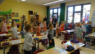 „Wir möchten Kinder frühzeitig für das Thema Gesundheit begeistern und sie dabei unterstützen, die Herausforderungen des Lebens ohne Sucht und Gewalt zu lösen. Deshalb haben wir Klasse2000 auch in den diesjährigen Lehrplan integriert. Mit der Symbolfigur KLARO erforschen die Kinder spielerisch und mit viel Spaß, was sie selbst tun können, um gesund zu bleiben und sich wohlzufühlen“, so begründet der Schulleiter der Grundschule Bachem-Britten, Christoph Breinig, das Engagement seiner Schule. Besonders freut er sich über die Unterstützung der IKK Südwest, die mit einer Spende die Teilnahme an dem Programm ermöglicht. Das Kollegium war von dem Unterrichtsprogramm sofort überzeugt und ist mit viel Engagement dabei, wie Klassenlehrerin Kristin Hellriegel bei einem Besuch von Bürgermeister Helmut Harth und IKK-Südwest-Chef Prof. Dr. Jörg Loth in der Grundschule berichtet.