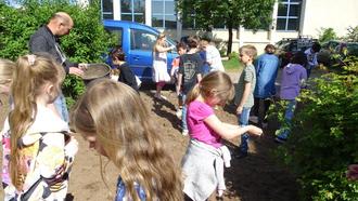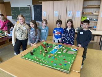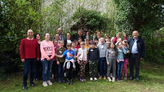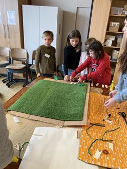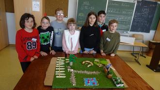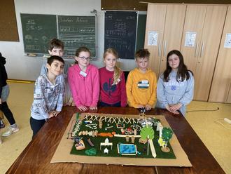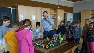 So waren am Ende des Vormittags der Bürgermeister Helmut Harth, der Schulleiter Thomas Seiwert und der Gartenbaumeister Patrik Mertes zur Präsentation der Modelle in die Klasse eingeladen. Alle waren sehr beeindruckt und begeistert von den Ergebnissen der jungen Bauherren. Und so wurden bei der anschließenden Besichtigung des Geländes dann auch direkt Pläne für den Start der Umsetzung einiger der Vorschläge gemacht. Ende Mai rückte bereits die Gartenkolonne an und die Kinder konnten auch schon die ersten Blumensamen säen.